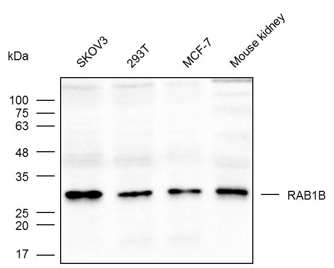 Western blot analysis with RAB1B antibody diluted at 1:1000