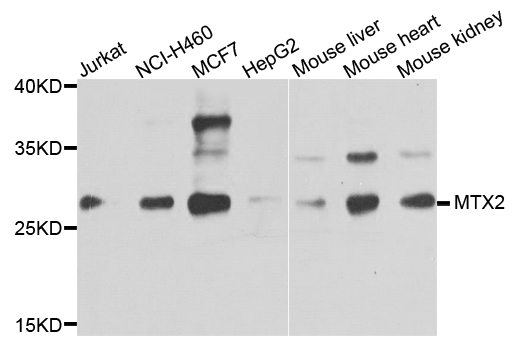 Western blot analysis with MTX2 antibody diluted at 1:1000