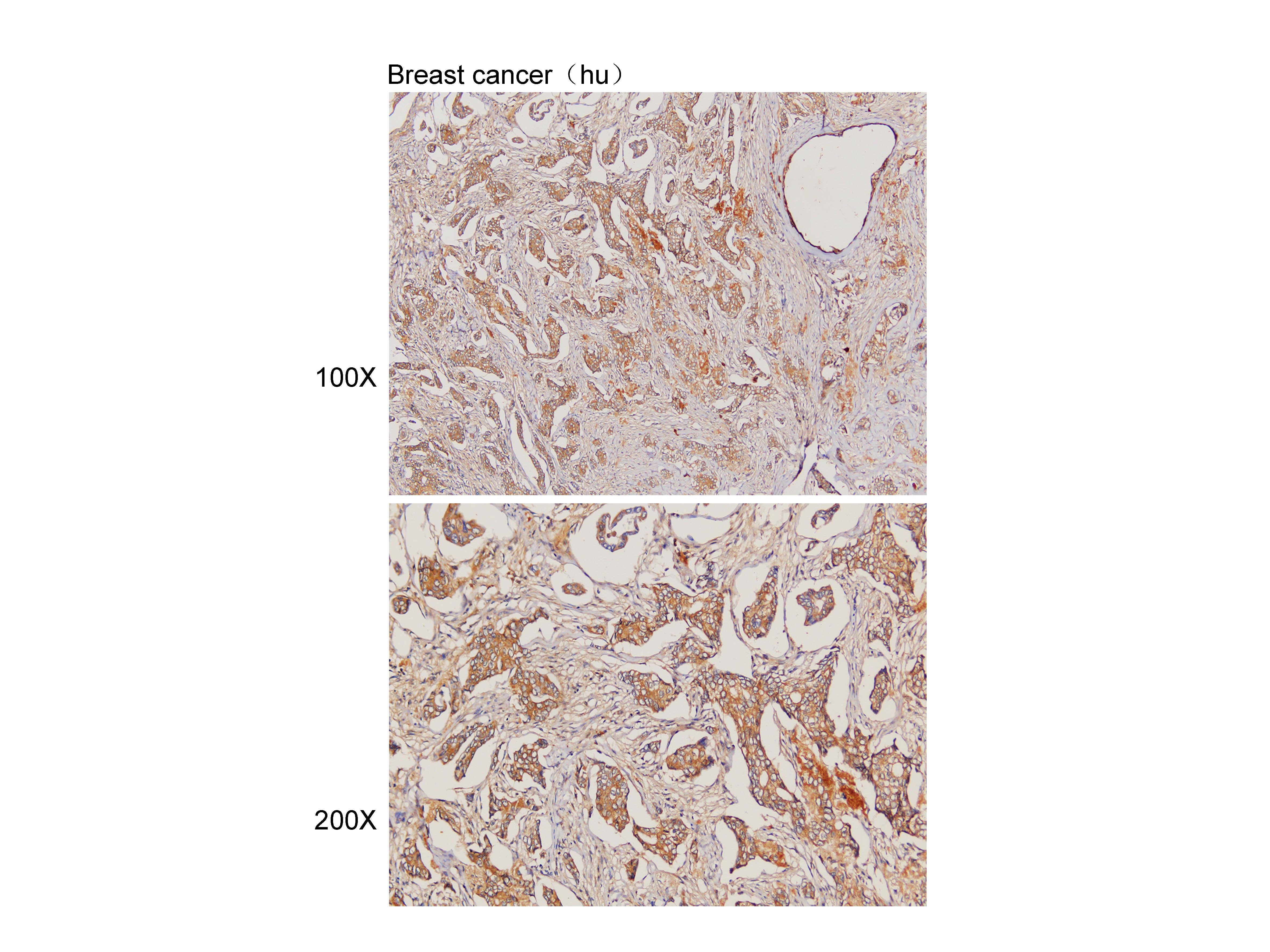 Immunohistochemistry of paraffin-embedded Breast cancer(hu) using RNF31 antibody at dilution of 1:100 (x100 lens��x200 lens).