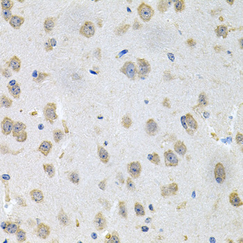 Immunohistochemistry of paraffin-embedded mouse brain using GNE antibody at dilution of 1:100 (x40 lens).