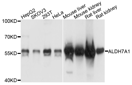 Western blot analysis with ALDH7A1 antibody diluted at 1:1000