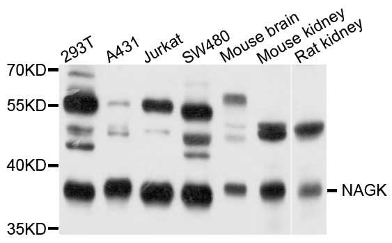 Western blot analysis with NAGK antibody diluted at 1:1000