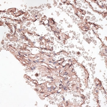 Immunohistochemistry of paraffin-embedded human lung cancer with COL6A1 antibody diluted at 1:100