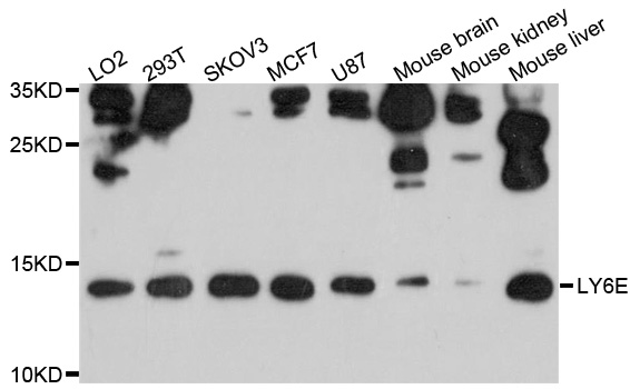 Western blot analysis with LY6E antibody diluted at 1:1000
