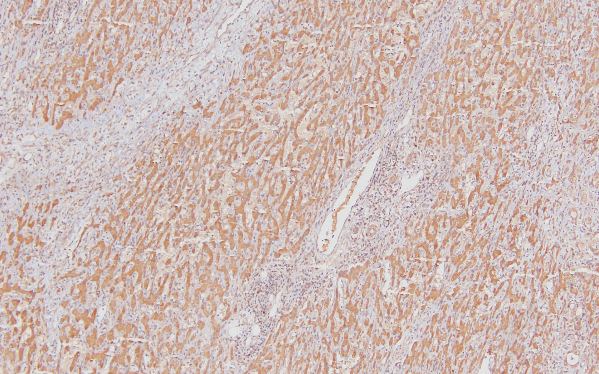 Immunohistochemistry of paraffin-embedded Liver cancer(hu) using LY6E antibody at dilution of 1:100 (x100 lens).