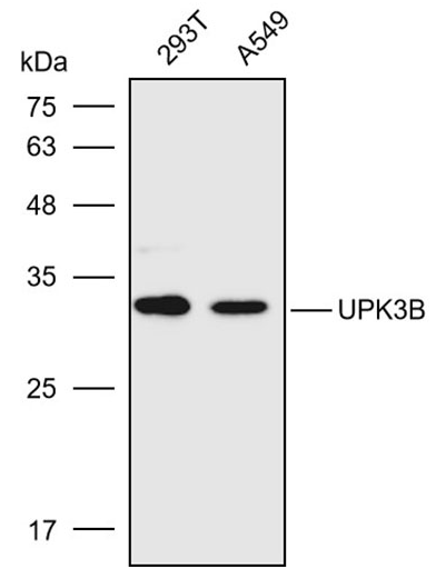 Western blot analysis with UPK3B antibody diluted at 1:2000 Lane: 293T,A549