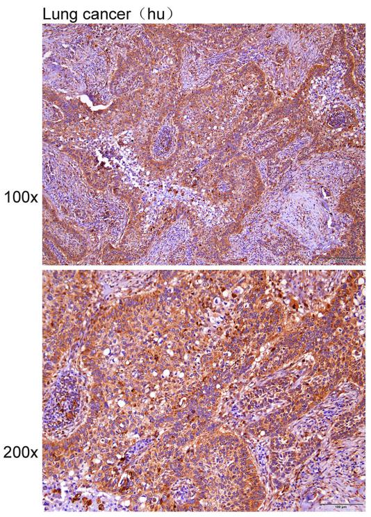 Immunohistochemistry of paraffin-embedded Human lung cancer tissue with CTSB antibody diluted at 1:140