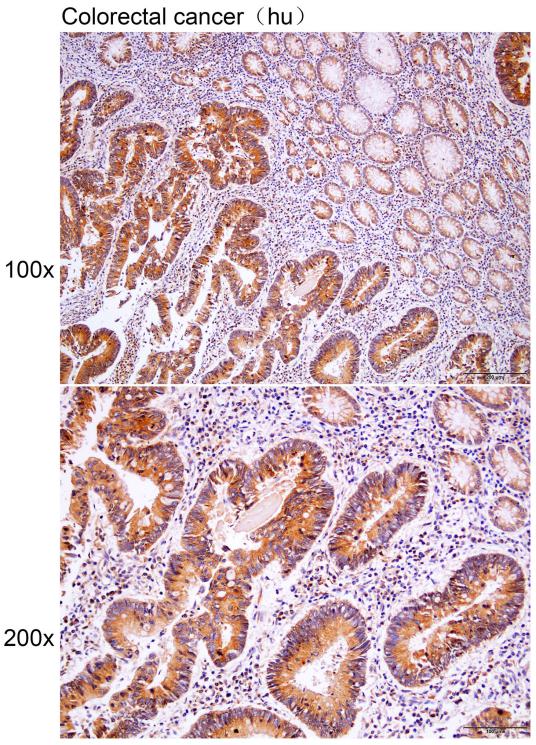Immunohistochemistry of paraffin-embedded Human colorectal cancer with PTPRE antibody diluted at 1:10