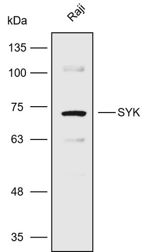 Western blot analysis with SYK antibody diluted at 1:1000;Lane: Raji