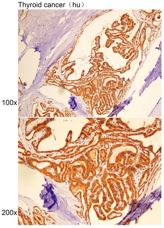 Immunohistochemistry of paraffin-embedded Human thyroid cancer with ALDH3B1 antibody diluted at 1:50