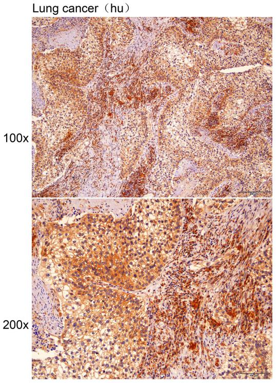 Immunohistochemistry of paraffin-embedded Human lung cancer with ANAPC10 antibody diluted at 1:50