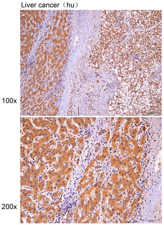 Immunohistochemistry of paraffin-embedded Human liver cancer with FLT3 antibody diluted at 1:25