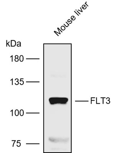 Western blot analysis with FLT3 antibody diluted at 1:1000; Lane: Mouse liver