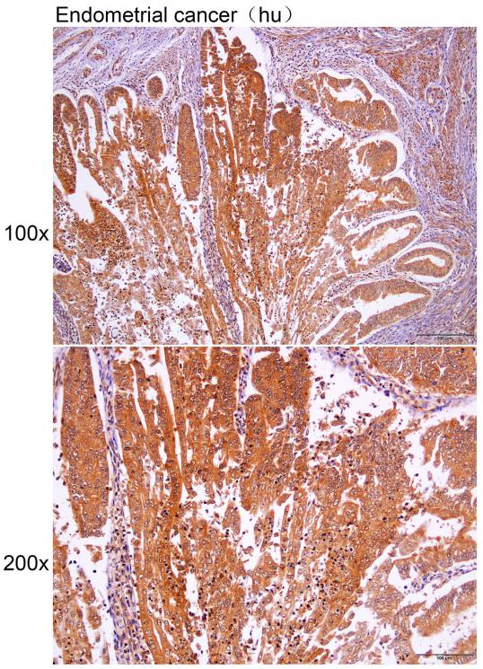 Immunohistochemistry of paraffin-embedded Human endometrial cancer with IKBKG antibody diluted at 1:25