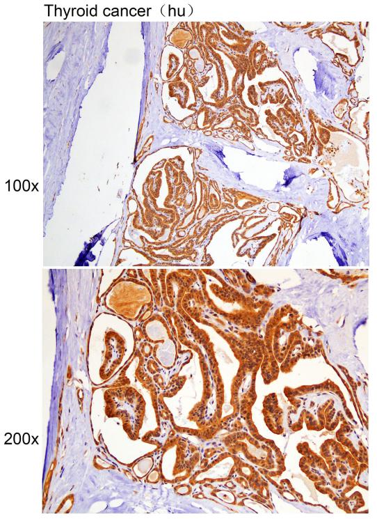 Immunohistochemistry of paraffin-embedded Human thyroid cancer with ART5 antibody diluted at 1:50