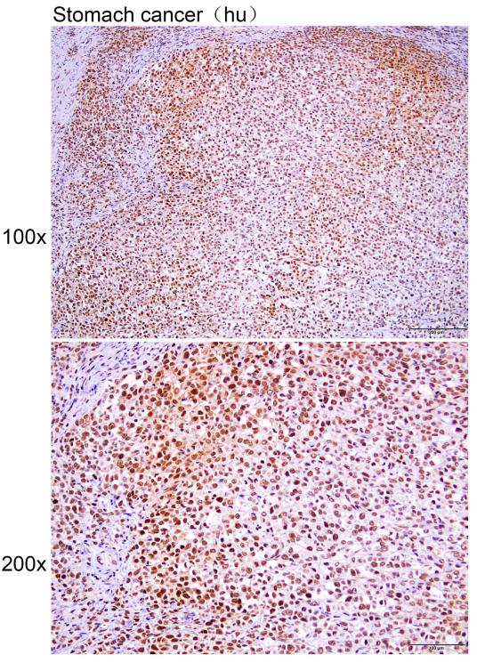 Immunohistochemistry of paraffin-embedded Human stomach cancer with THOC7 antibody diluted at 1:30