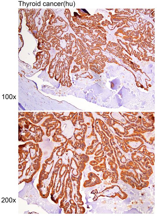 Immunohistochemistry of paraffin-embedded Human thyroid cancer with CDK5RAP3 antibody diluted at 1:50