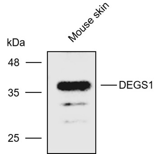 Western blot analysis with DEGS1 antibody diluted at 1:500; Lane: Mouse skin