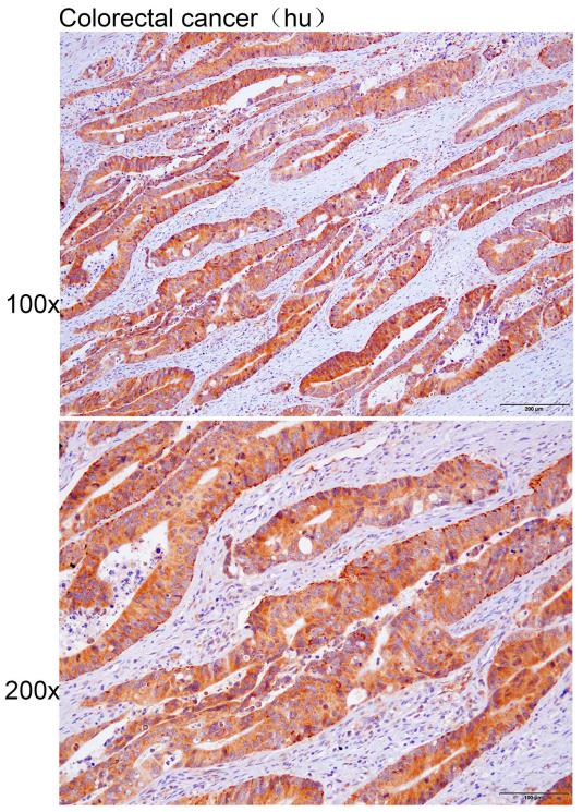 Immunohistochemistry of paraffin-embedded Human colorectal cancer with DHRS3 antibody diluted at 1:30