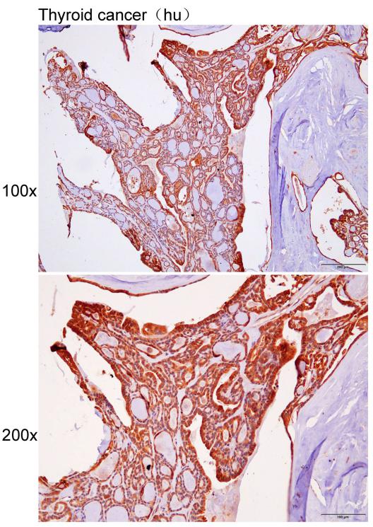 Immunohistochemistry of paraffin-embedded Human thyroid cancer with FTO antibody diluted at 1:30