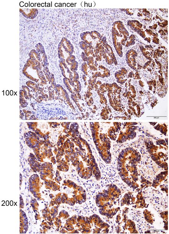 Immunohistochemistry of paraffin-embedded Human colorectal cancer with HSD17B6 antibody diluted at 1:50