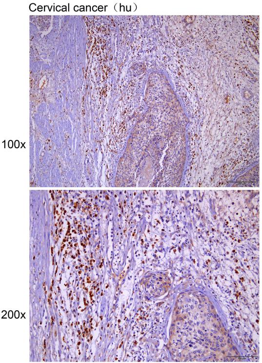 Immunohistochemistry of paraffin-embedded Human cervical cancer with HYAL3 antibody diluted at 1:40