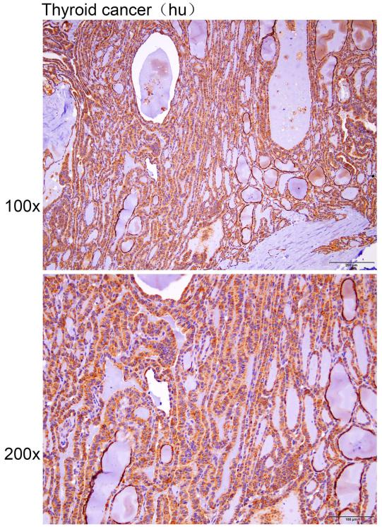 Immunohistochemistry of paraffin-embedded Human thyroid cancer with TICAM2 antibody diluted at 1:30