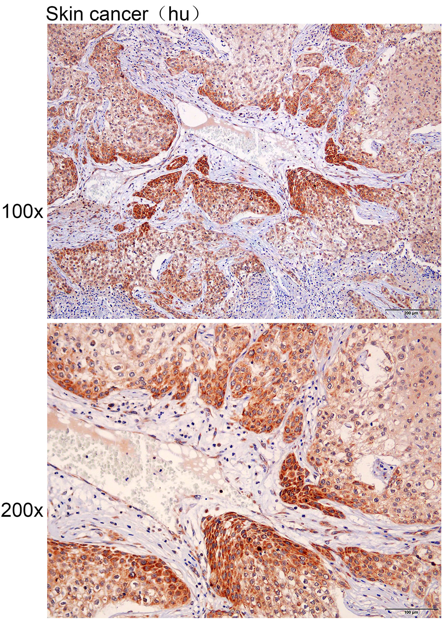 Immunohistochemistry of paraffin-embedded Human skin cancer with MTFP1 antibody diluted at 1:30