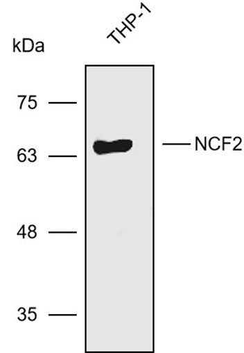 Western blot analysis with NCF2 antibody diluted at 1:500; Lane: THP-1