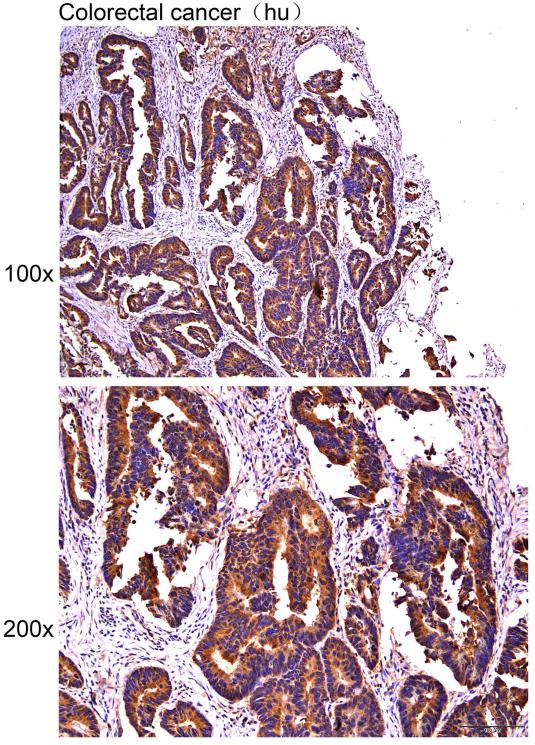 Immunohistochemistry of paraffin-embedded Human colorectal cancer with SULT1B1 antibody diluted at 1:50