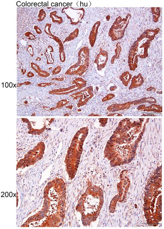 Immunohistochemistry of paraffin-embedded Human colorectal cancer with SULT2B1 antibody diluted at 1:25