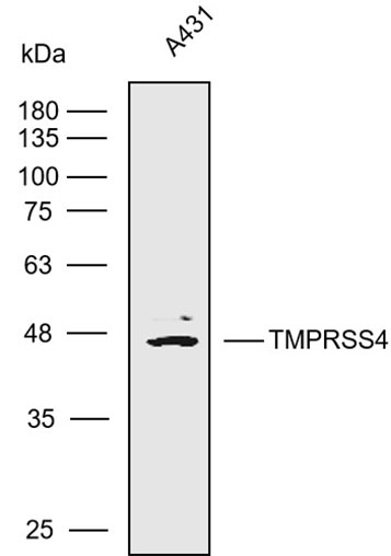 Western blot analysis with TMPRSS4 antibody diluted at 1:500; Lane: A431
