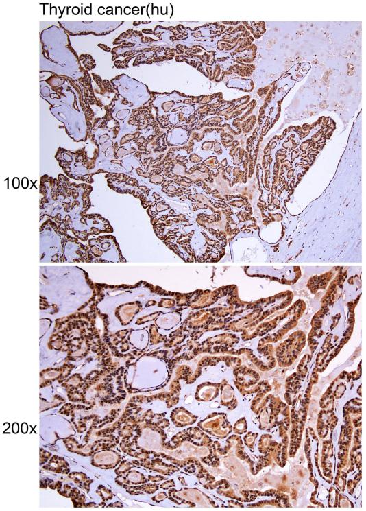 Immunohistochemistry of paraffin-embedded Human thyroid cancer with USF1 antibody diluted at 1:50