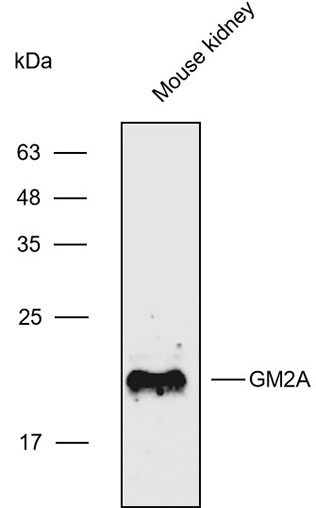 Western blot analysis with GM2A antibody diluted at 1:200; Lane: Mouse kidney tissue