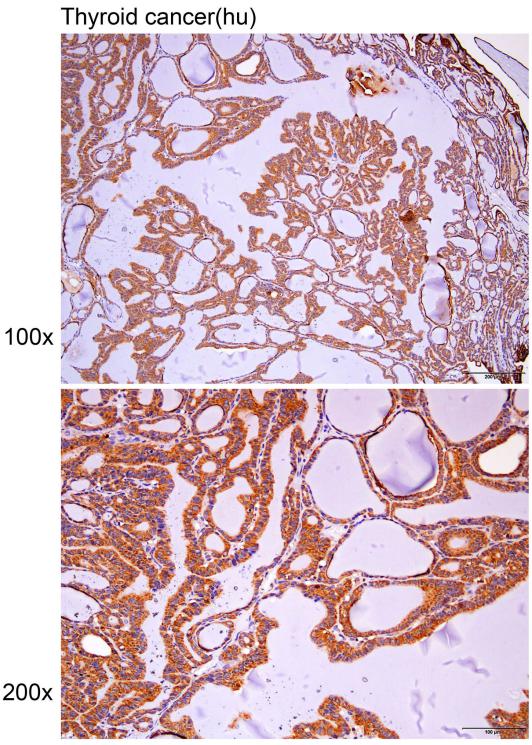 Immunohistochemistry of paraffin-embedded Human thyroid cancer with UBE2C antibody diluted at 1:50