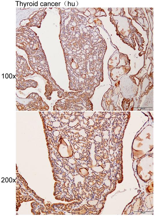 Immunohistochemistry of paraffin-embedded Human thyroid cancer with DPY30 antibody diluted at 1:25