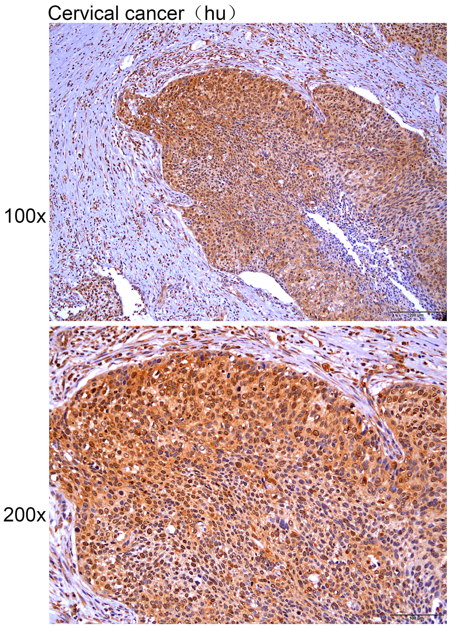 Immunohistochemistry of paraffin-embedded Human cervical cancer with KCTD13 antibody diluted at 1:50