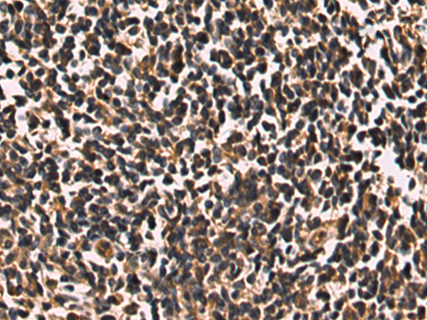 Immunohistochemistry of paraffin-embedded Human tonsil using IL9 antibody diluted at 1:30