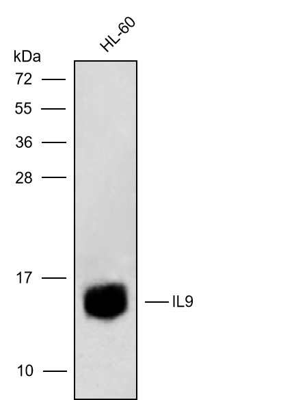 Western blot analysis with IL9 antibody diluted at 1:250;Lane:HL-60