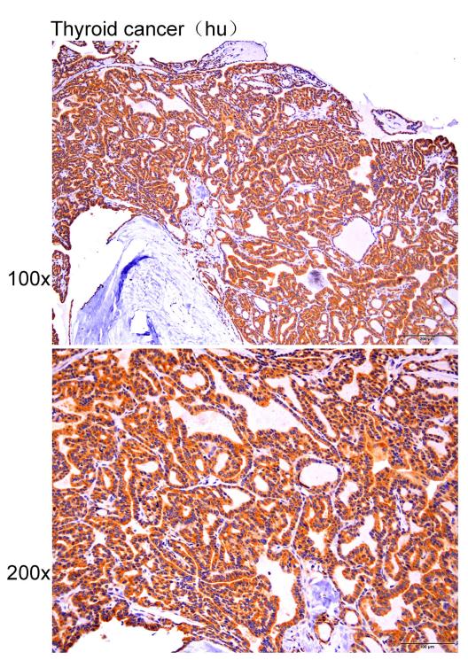 Immunohistochemistry of paraffin-embedded Human thyroid cancer with EPSTI1 antibody diluted at 1:50