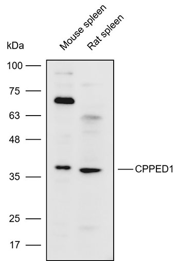 Western blot analysis with EPSTI1 antibody diluted at 1:1000; Lane: Mouse spleen,Rat spleen
