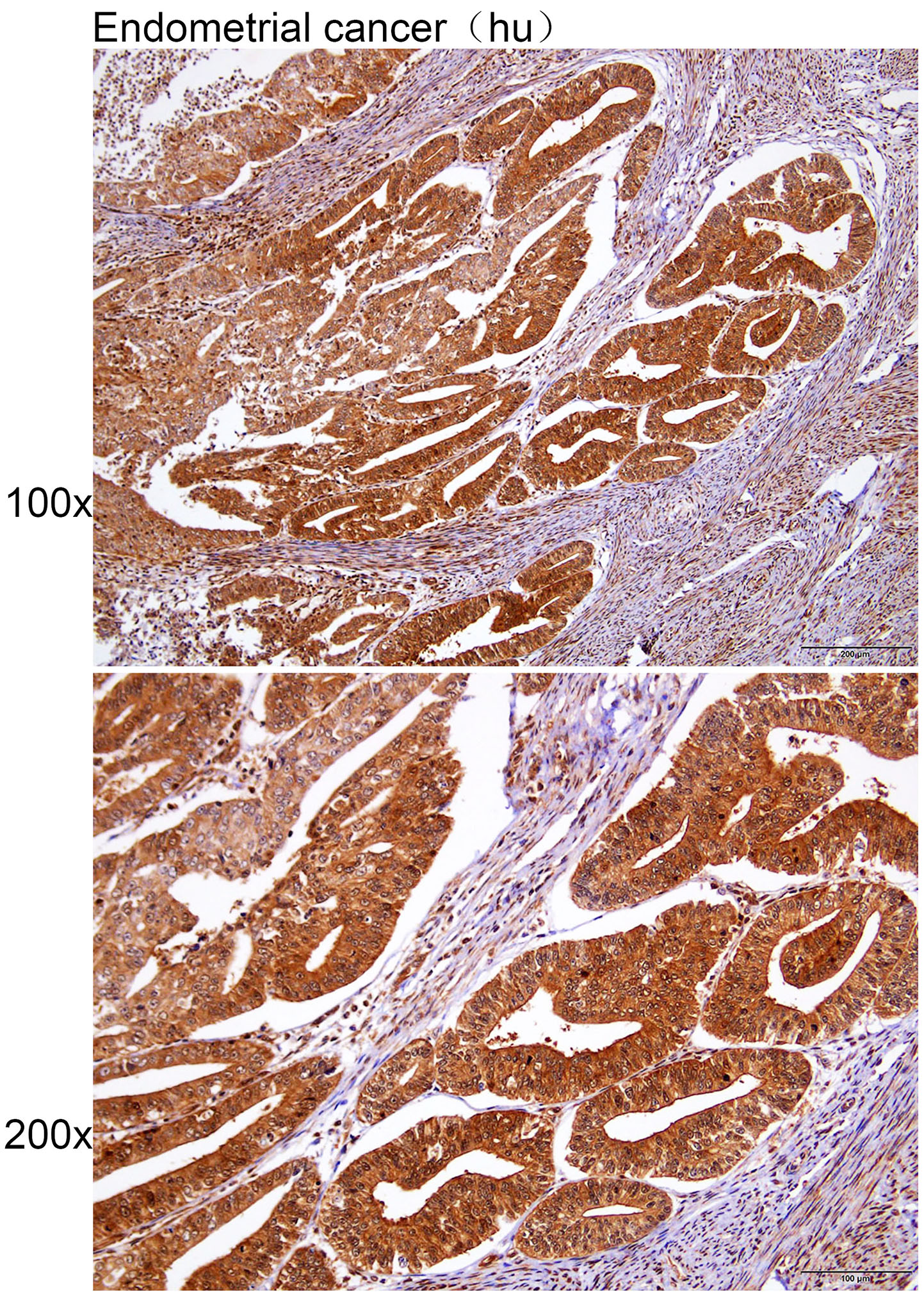 Immunohistochemistry of paraffin-embedded Human endometrial cancer with FGF7 antibody diluted at 1:30