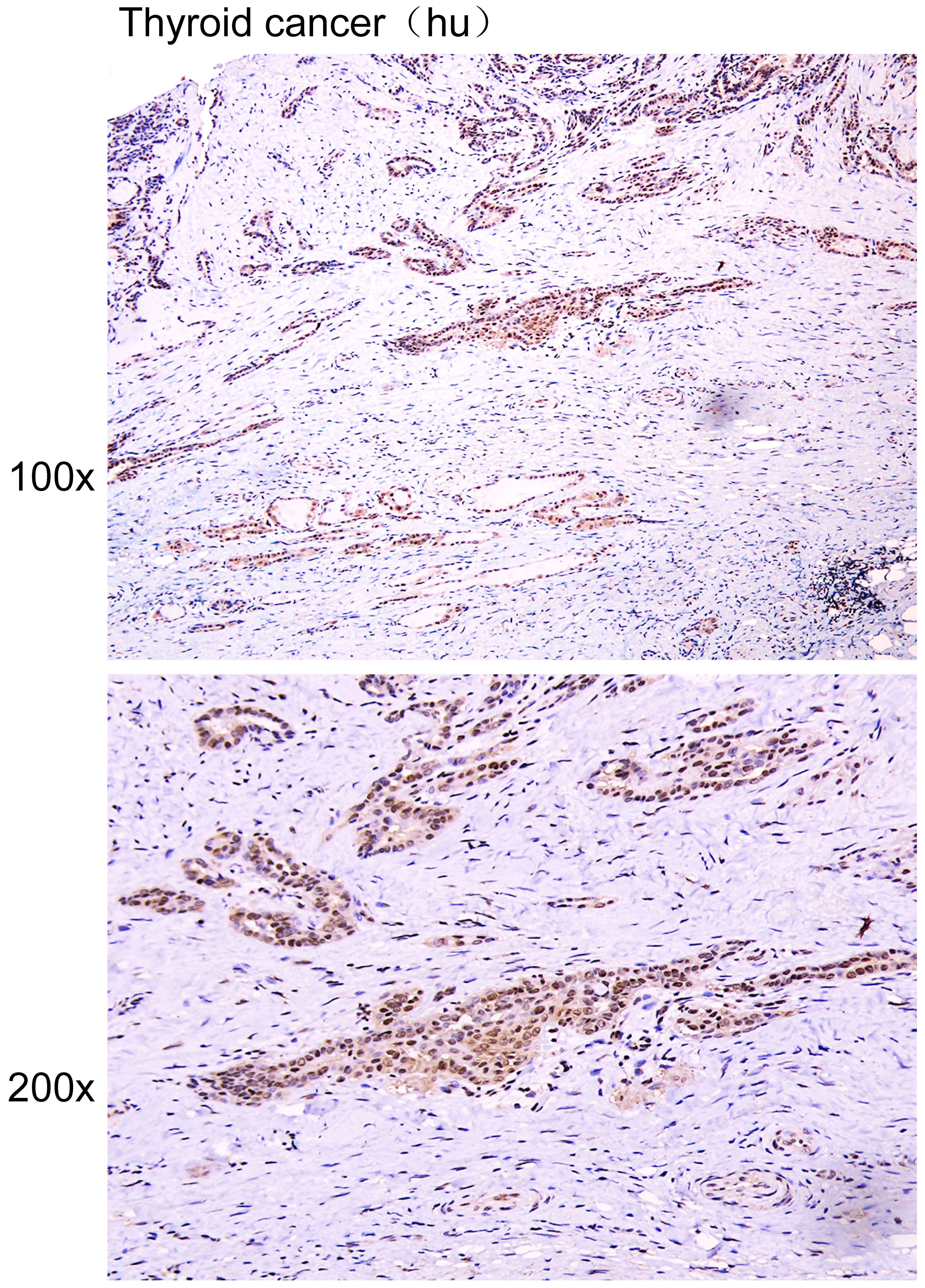 Immunohistochemistry of paraffin-embedded Human thyroid cancer with ALYREF antibody diluted at 1:15