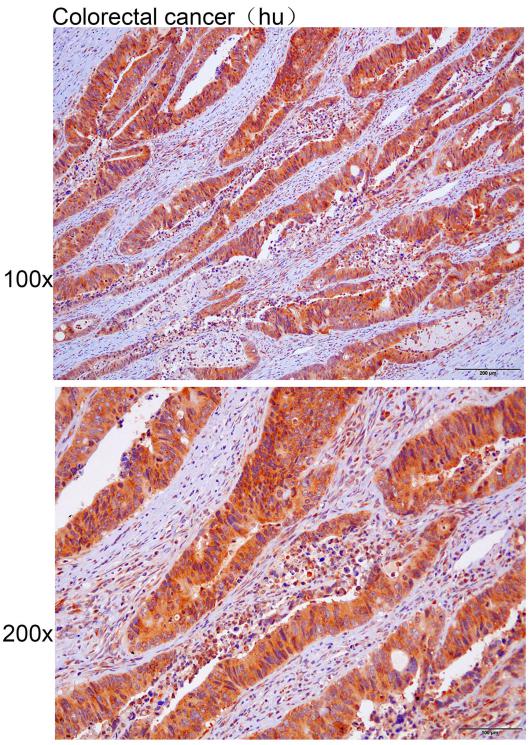 Immunohistochemistry of paraffin-embedded Human lung colorectal tissue with PLAT antibody diluted at 1:50