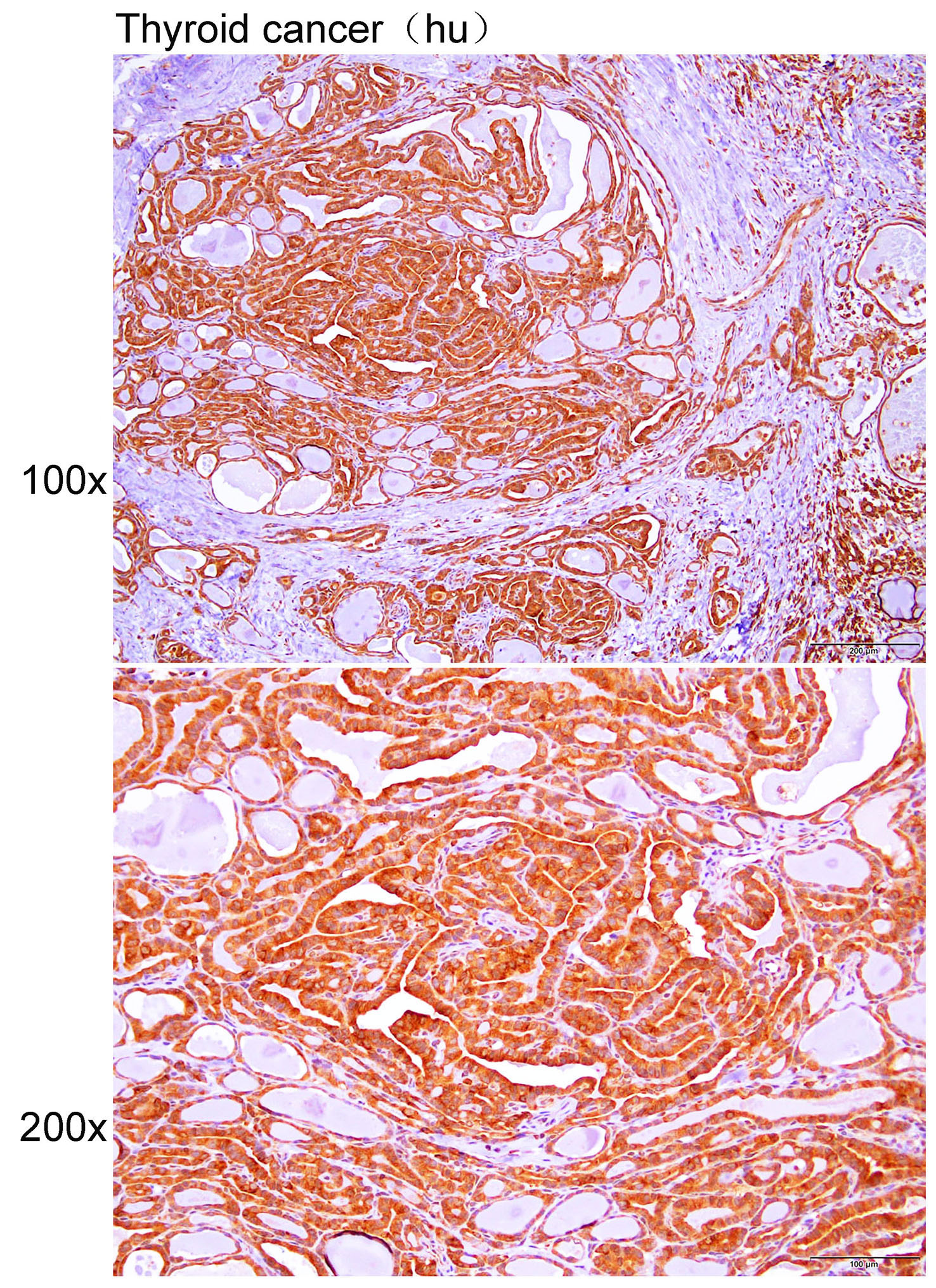 Immunohistochemistry of paraffin-embedded Human thyroid cancer with CYP7A1 antibody diluted at 1:50