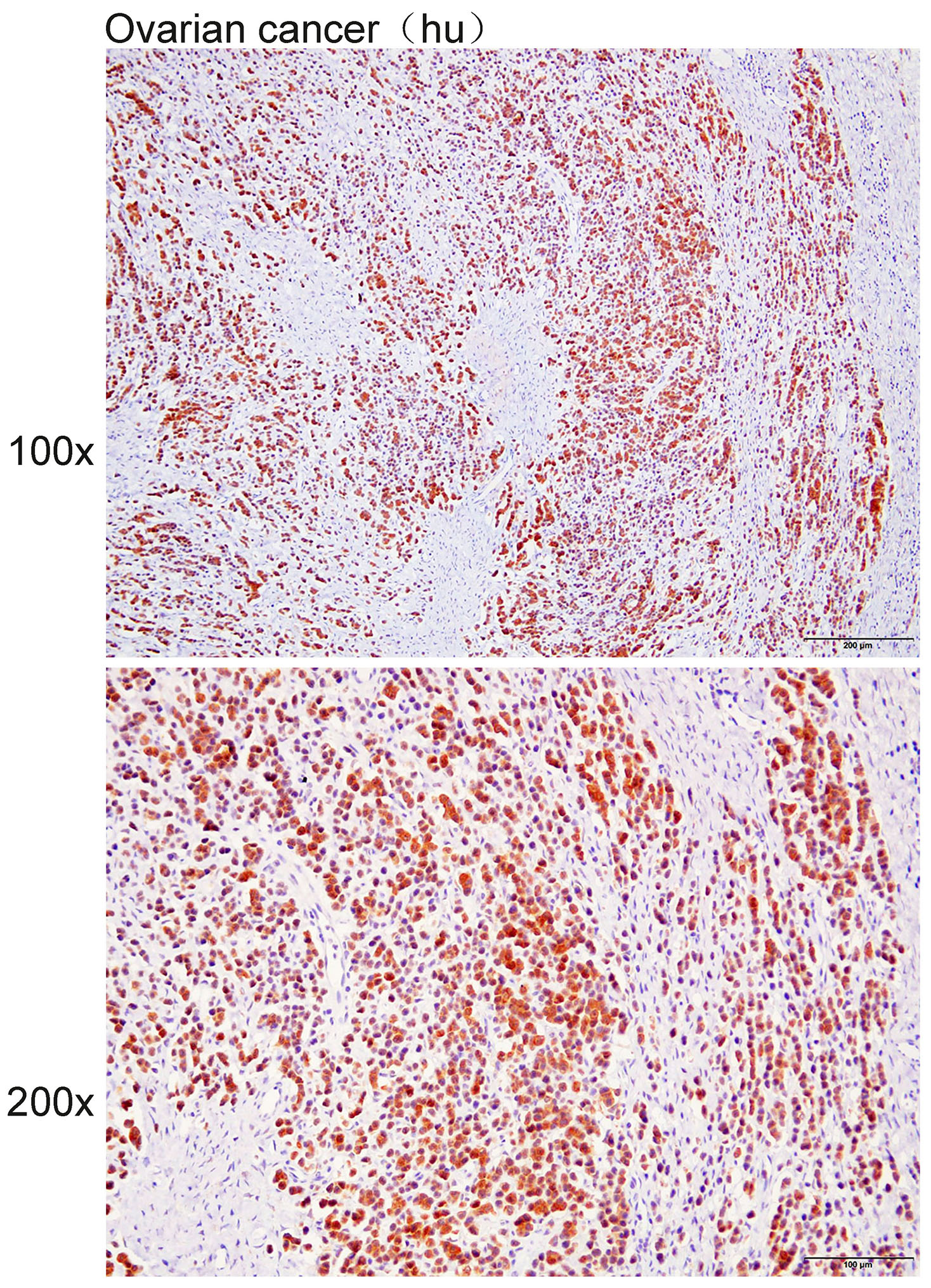 Immunohistochemistry of paraffin-embedded Human ovarian cancer with PARP10 antibody diluted at 1:30