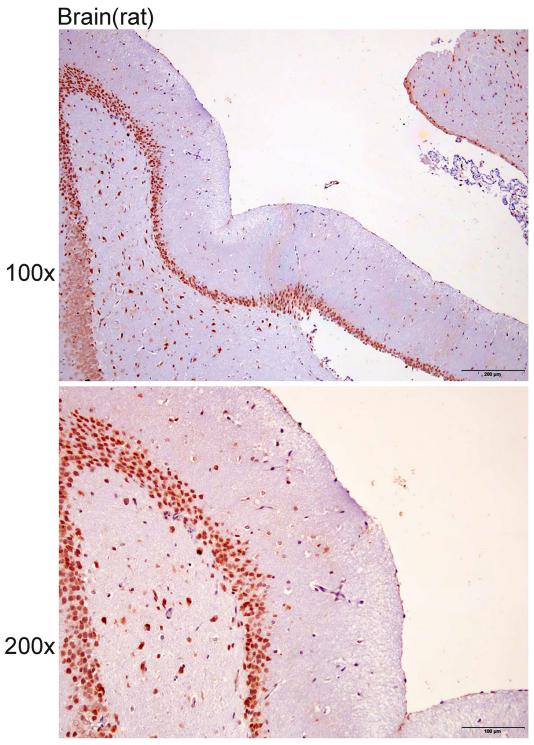 Immunohistochemistry of paraffin-embedded Rat brain with KCNK3 antibody diluted at 1:20