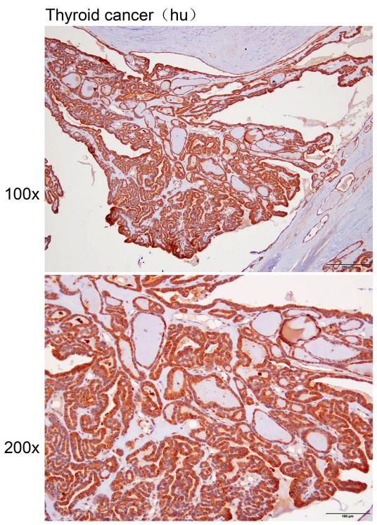 Immunohistochemistry of paraffin-embedded Human thyroid cancer with ISM2 antibody diluted at 1:50