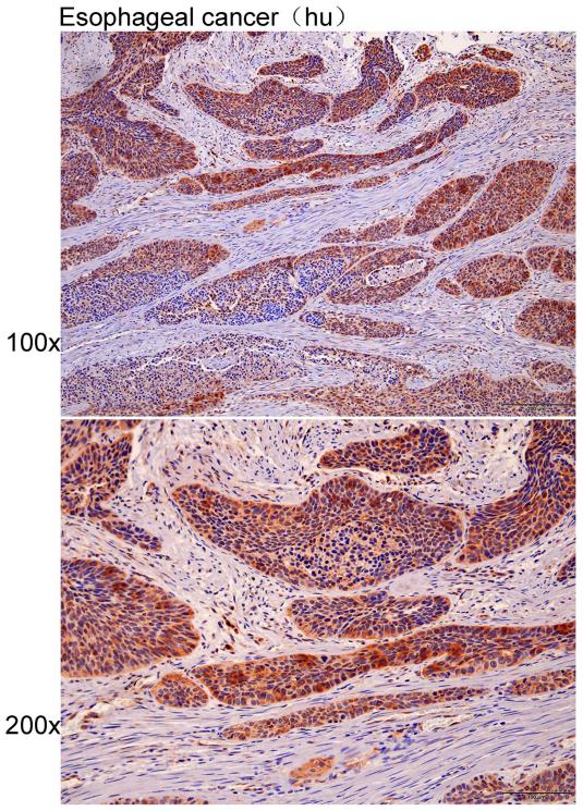 Immunohistochemistry of paraffin-embedded Human esophageal cancer with RAB2A antibody diluted at 1:40