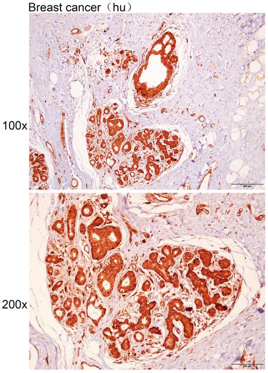 Immunohistochemistry of paraffin-embedded Human breast cancer with GFRA4 antibody diluted at 1:20